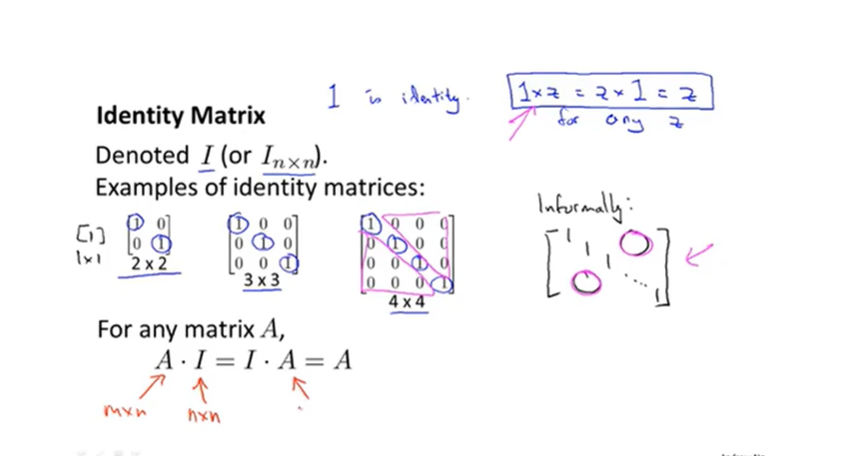 Chapter-3 2023-2-05 18:46 | 机器学习 135 字 | 1 分钟内 这章线代基本学过了 数组是列为1的矩阵 矩阵通过常用大写字母表示,向量等用小写字母表示。 矩阵向量乘法:结果矩阵列是第二个矩阵的列数,行是第一个矩阵的行数。满足A2的行和A1的列相同才能乘。 计算构造成矩阵 矩阵乘法没有交换律,有结合律。单位矩阵有交换律。 只有方阵才可逆。